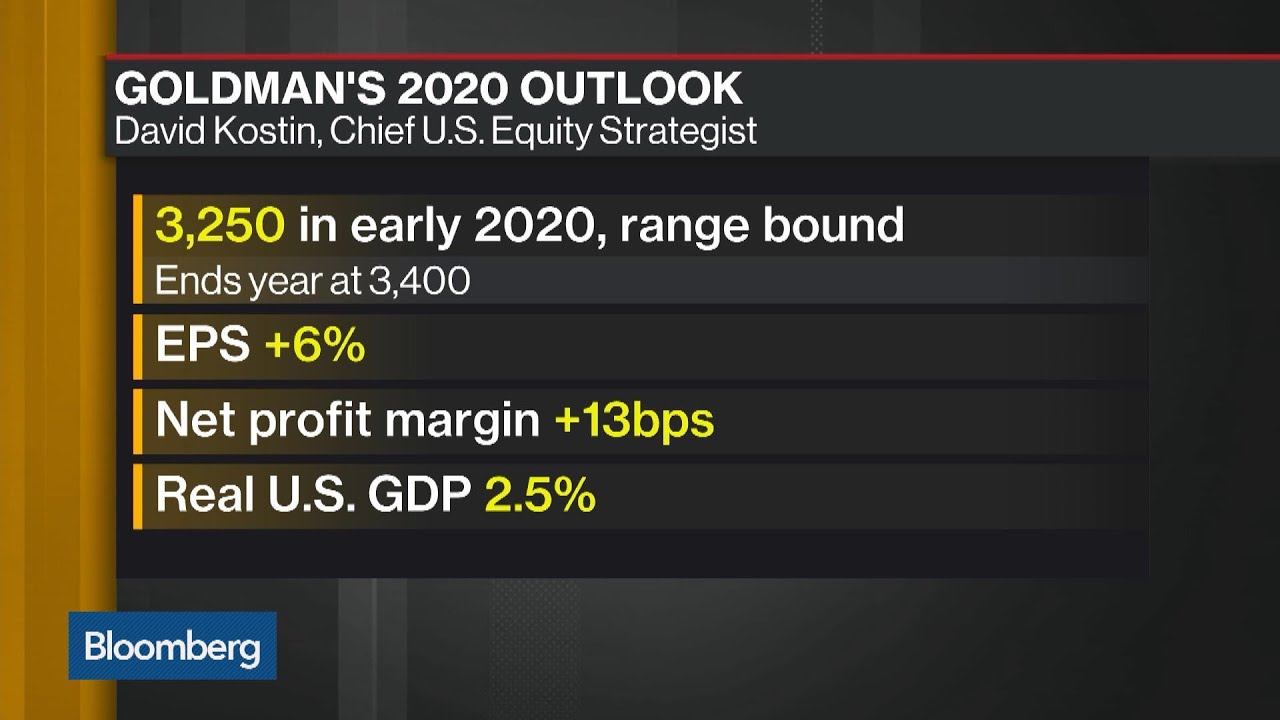 Dec.10 -- David Kostin, chief U.S. equity strategist at Goldman Sachs, explains his outlook for 2020 as the firm sees the S&P 500 ending the year at 3,400. He speaks with Bloomberg’s Alix Steel on "Bloomberg Daybreak: Americas."