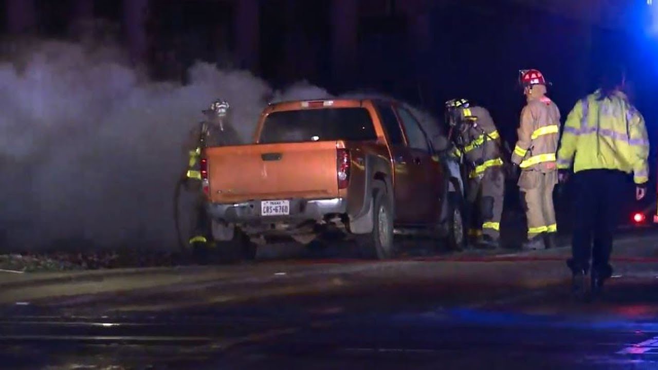 A local driver managed to get out of his pickup truck just before it burst into flames early Tuesday morning, San Antonio police said.