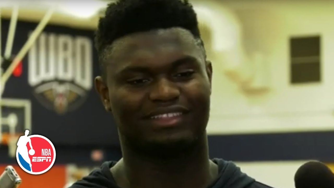 New Orleans Pelicans rookie Zion Williamson addresses the media one day before his highly anticipated NBA debut vs. the San Antonio Spurs on January 22. #NBA #Sports